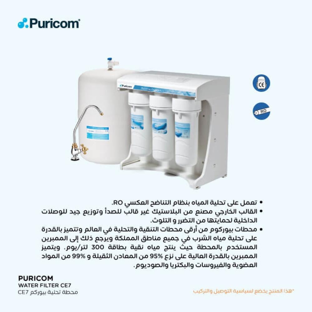 وصف فلتر تحلية المياه بيوريكم CE_7 + قارورة مياه مجانية :