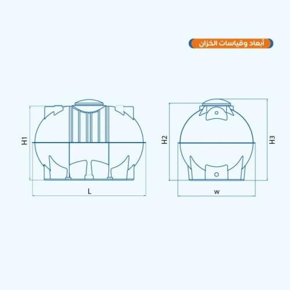 وصف خزان ماء 3000 لتر أفقي علوي :